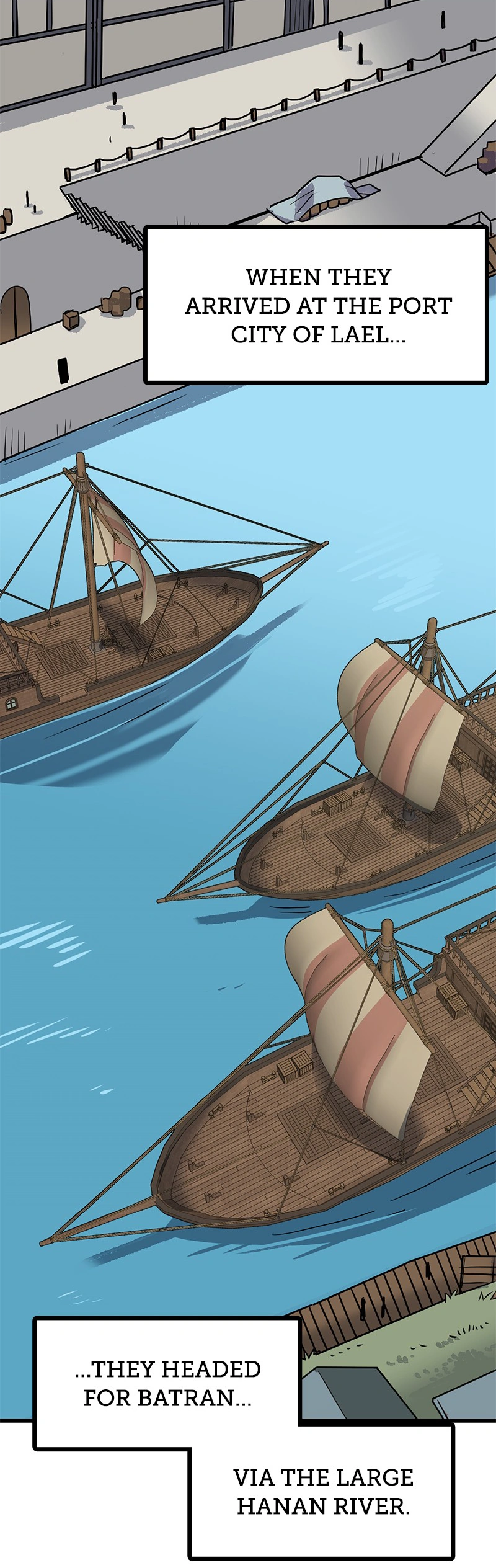 In 304 AC, Arin left Serkarsel and set out for the Batran Kingdom, escorted by about 50 cavalrymen. Mina, who was riding the carriage together, unfolded a strangely drawn picture on a piece of white paper. Mina said to Arin that here, take a close look at this map, this was the Karsel Kingdom, which was where they were now, their destination, the Batran Kingdom, was here, he does saw the here flowing through the two countries, they're going to a dock to take a boat ride up. Someone said hmm, seemed like they're almost there. When they arrived at the port city of Lael, they headed for Batran, via the large here. [1]