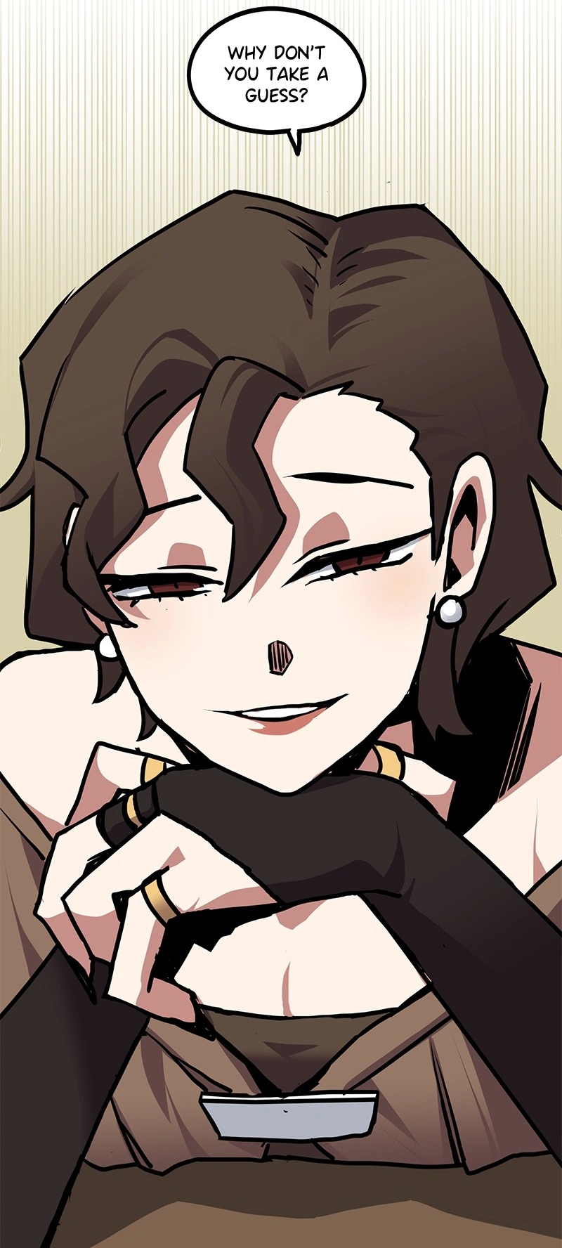 He looked around with frightened eyes and thought a witch's room is quite something indeed, it's as if the whole room is drenched in blood, also... ...why Lady Raedi is dressed like that. Raedi was sitting with her legs crossed, looking suggestive. Raedi smiled and opened her mouth that welcome, Pete. He thought that's attire for a witch ritual, if this is Raedi's way of establishing dominance... ...then he'll has to start being assertive too. He raised his head stiffly, abandoned his previous attitude, glared at Raedi, and opened his mouth in a challenging tone that she could please tell him the reason she called him over. [12]